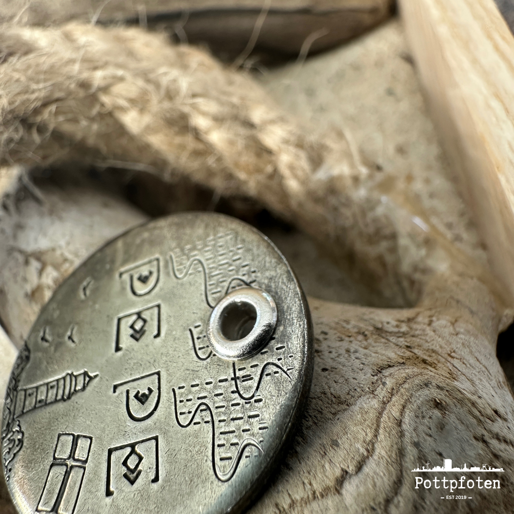 Handgeprägt, robust und einzigartig – Hundemarken mit Charakter.Jede Marke entsteht in echter Handarbeit und wird individuell für deinen Hund gefertigt.