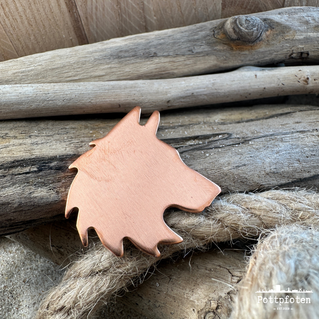 Da wir jede Marke individuell und liebevoll von Hand fertigen, kann es zu leichten Abweichungen von der Abbildung kommen. Genau diese Individualität macht unsere Marken zu etwas Besonderem. Jeder Name, der auf die Marke gestempelt wird, beeinflusst ihr Aussehen ein wenig, sodass sie sich perfekt an deinen geliebten Vierbeiner anpasst.